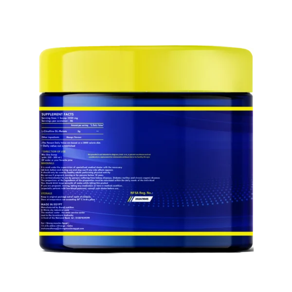 يساهم السيترولين مالات في رفع مستويات الأرجينين وأكسيد النيتريك (Nitric Oxide) في الجسم، مما يساعد على تعزيز القدرة على التحمل وتقليل الشعور بالإجهاد العضلي أثناء التمارين المكثفة. كما يدعم الأداء الرياضي ويساعد في تسريع الاستشفاء بعد التمرين، مما يجعله خيارًا مثاليًا لتمارين القوة والتحمل.